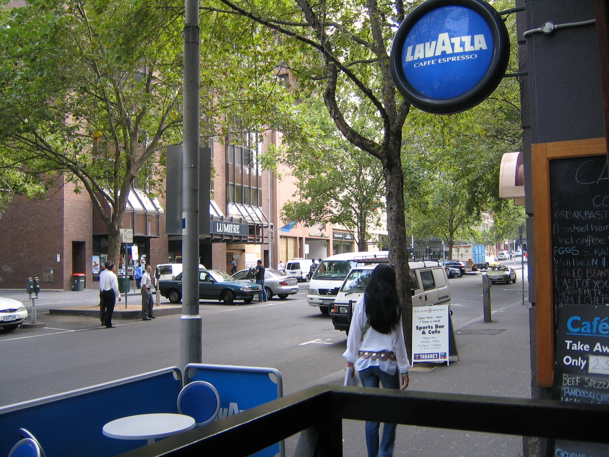 After turning onto Lonsdale, trying my final bits of luck further north-east and walking towards the outskirts of the city centre I saw on my right a small, cosy café that looked just perfect! To be frank, when I was first writing these lines, I did not have a vivid recollection of neither the name nor the exact place. However, after going through my archives I found a photo I had taken when sitting in the café. Apparently the main focus of the photo was a Mediterranean goddess passing by just that time in-front of me, but on the back ground there was a building with a sign Lumiere. I used Google to look for “Lumiere Melbourne” and it came out with some hits. I tried some of the locations and one looked promising. Actually, when I used Google Street View I saw the same building in-front of me. I moved around the small Google man and there was the café in-front of me! Modern technology can really make miracles happen!
